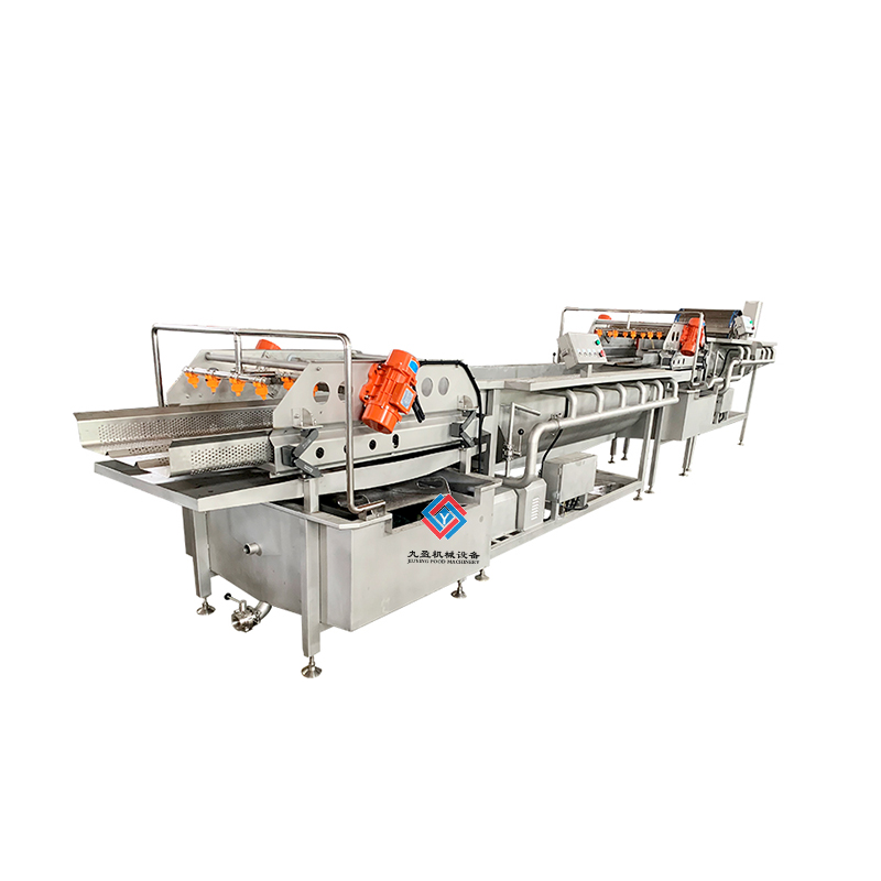 凈菜加工成套生產(chǎn)線是針對(duì)多種的蔬菜進(jìn)行清洗和加工處理的,可以將蔬菜表面的泥土進(jìn)行清洗干凈,還能夠?qū)κ卟诉M(jìn)行農(nóng)殘?zhí)幚?,可以將蔬菜的農(nóng)藥進(jìn)行分解,提升蔬菜的品質(zhì)程度,通過(guò)清洗之后的蔬菜輸送到震動(dòng)篩進(jìn)行麗水處理,能夠?qū)⑹卟松洗蟛糠值乃譃r干,之后輸送到風(fēng)干設(shè)備上可以將蔬菜的表面水分更加充分的蒸發(fā),之后再進(jìn)行整理過(guò)后可以進(jìn)行真空包裝處理,經(jīng)過(guò)真空包裝處理之后的蔬菜可以延長(zhǎng)保鮮時(shí)間,建議填充質(zhì)量的氮?dú)饪梢允贡ur效果好。